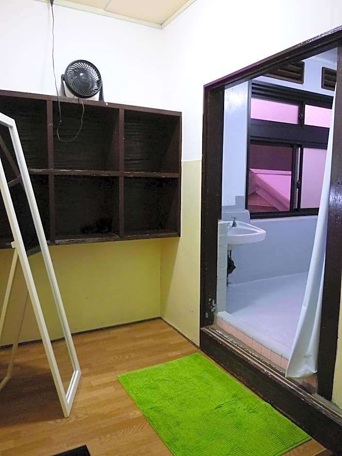 The well-fitted kitchen has a refrigerator, kitchenware and a microwave. The quadruple room offers air conditioning, tatami, as well as a shared bathroom boasting a bath or a shower and a hairdryer. The unit has 4 futons.