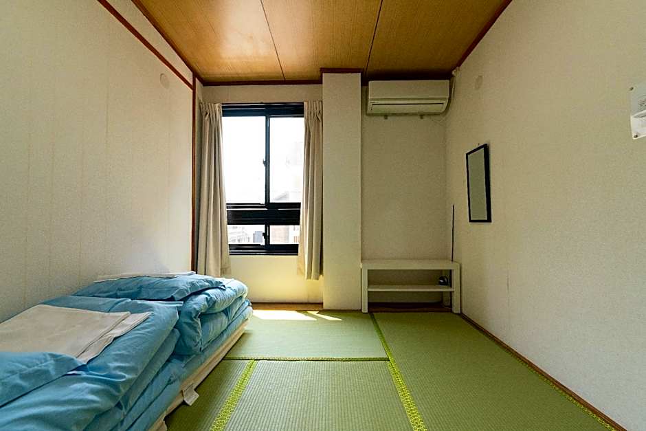 The well-fitted kitchen has a refrigerator, kitchenware and a microwave. The quadruple room offers air conditioning, tatami, as well as a shared bathroom boasting a bath or a shower and a hairdryer. The unit has 4 futons.